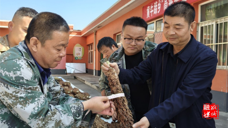 在黄牛蹄乡联合总社的“高粱穗王”争霸现场,来自全乡 12 个村集体合作社的负责人个个脸上洋溢着丰收的喜悦,自信十足地带着他们的“穗王”来到现场参加评比。评委们为他们“量身高”“称体重”“测围度”。最终,李庄村股份经济合作社带来的高粱穗在综合评定中脱颖而出,获得了“高粱穗王”的称号。