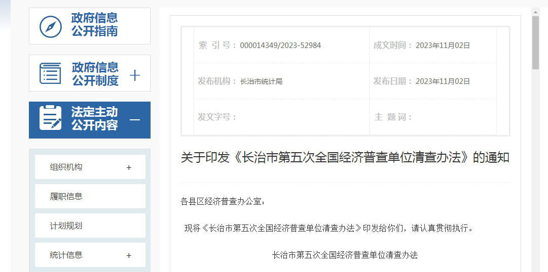 长治市统计局发布关于印发