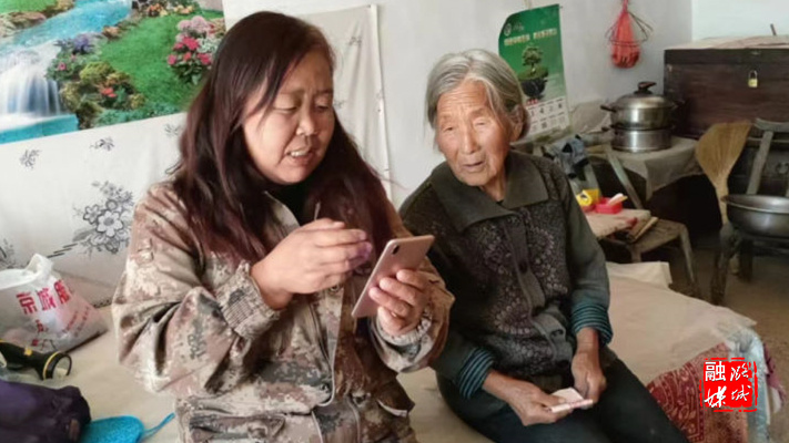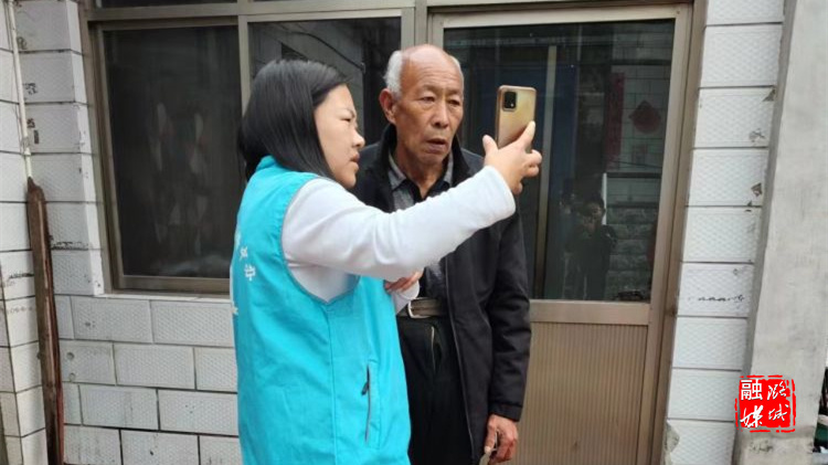 ▲史回镇任和等村网格员入户帮助老年人完成社保资格网上认证。