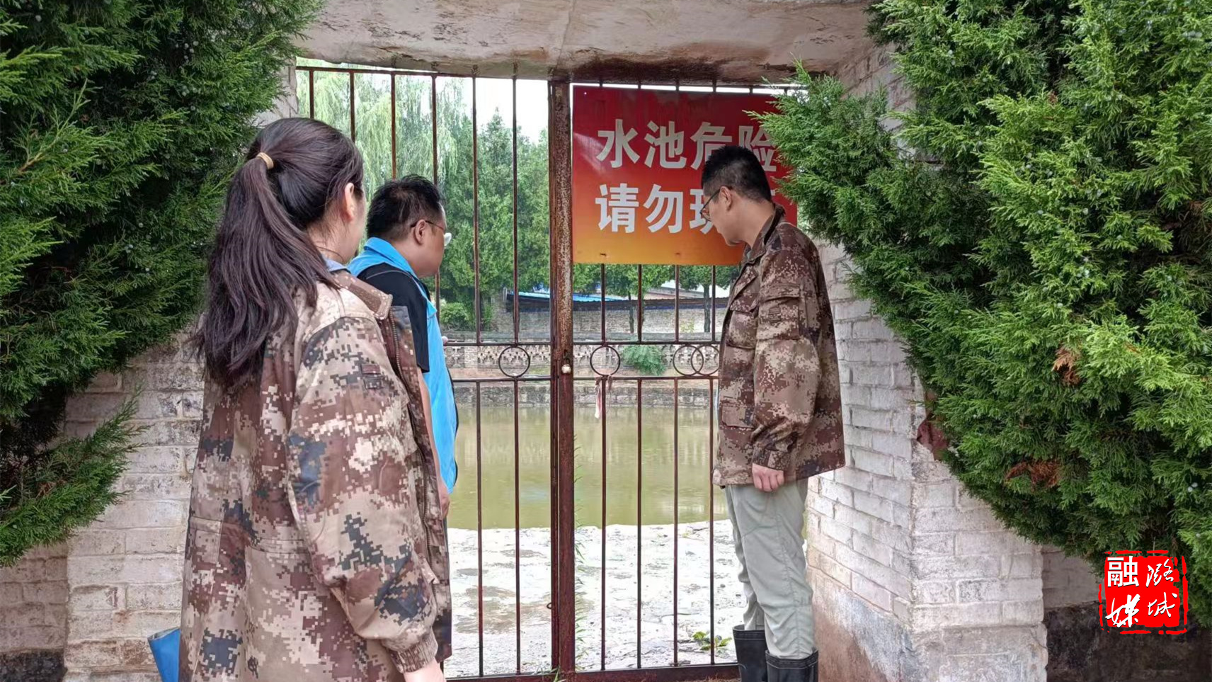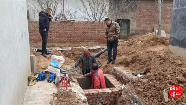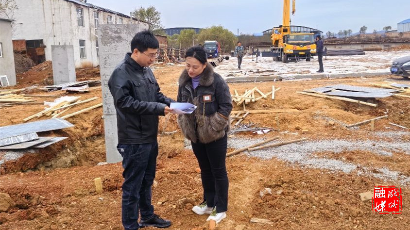 ▲翟店街道相关负责人到村督促水网改造项目施工进度。