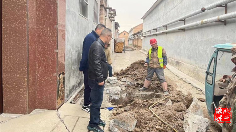 ▲成家川街道相关负责人到窑上村、成家川村查看集中供热二网施工进度。