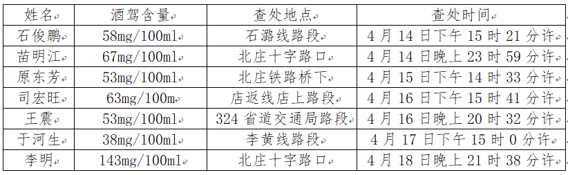 潞城交警大队对以下酒驾、醉驾的违法人员进行曝光,请广大驾驶员牢记“酒后不开车,开车不喝酒”,为家人负责、为自己负责、为社会负责,远离酒驾,珍爱生命。