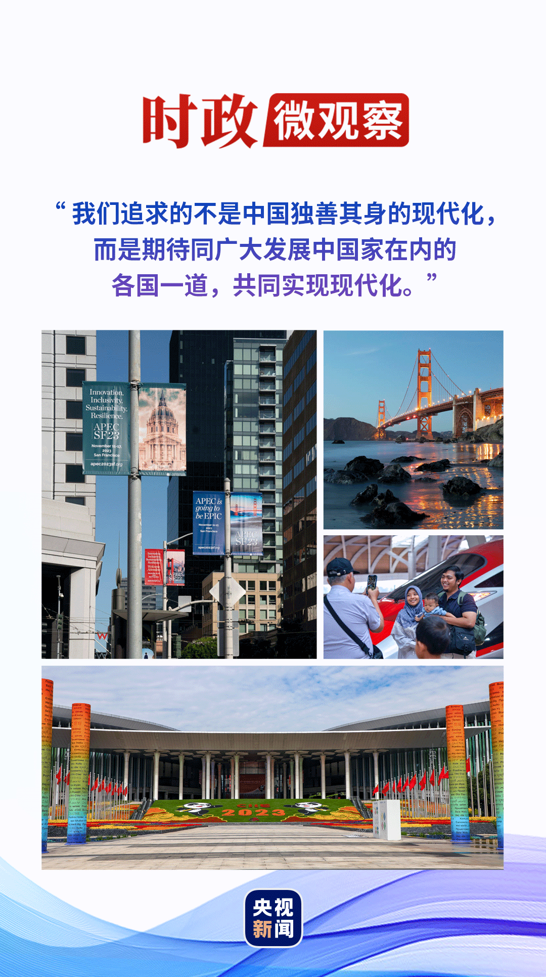 《时政微观察》梳理发现,习近平主席多次在亚太经合组织平台上阐释构建亚太命运共同体理念,明晰宣示中国一直积极融入亚太区域合作,始终是亚太开放合作的推动者。