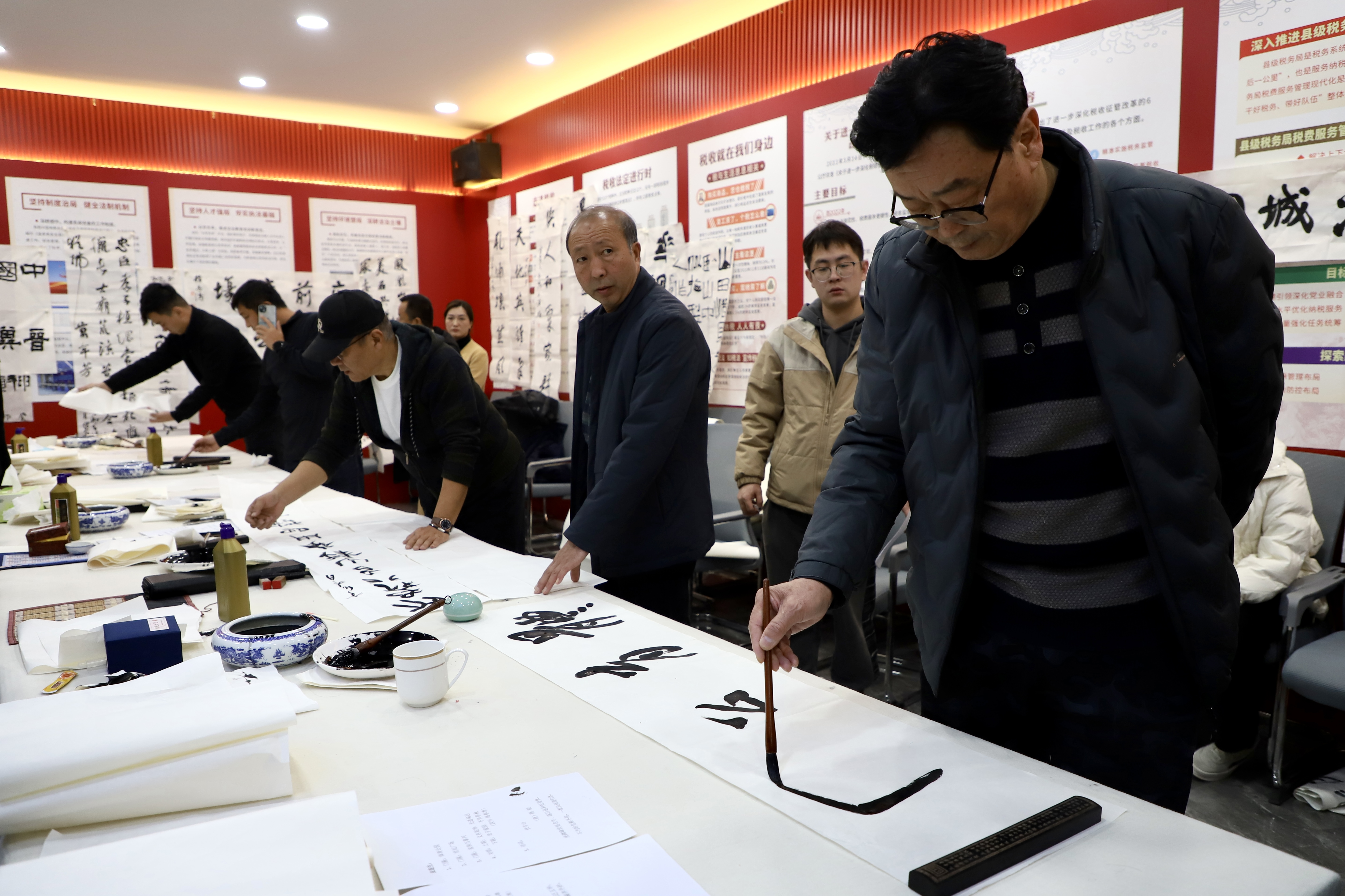 此次采风创作活动使各位书法名家感悟了潞城的风土民情和文化积淀,探寻了潞城的红色古迹和俊美山川,领略了潞城发展定位和产业布局。各位书法名家挥毫泼墨、切磋技艺,一幅幅优秀作品跃然纸上,或大气磅礴、或隽永俊秀,引得大家的一致好评。