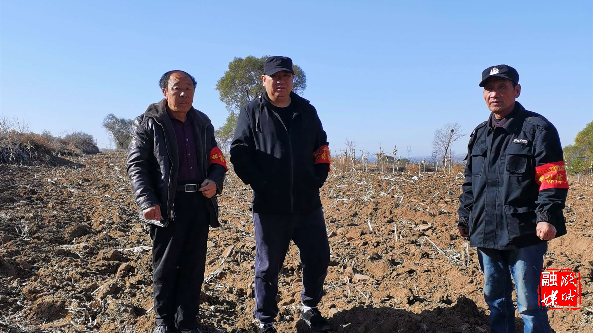 ▲成家川街道林业站工作人员到村巡查田间秸秆清理情况。
