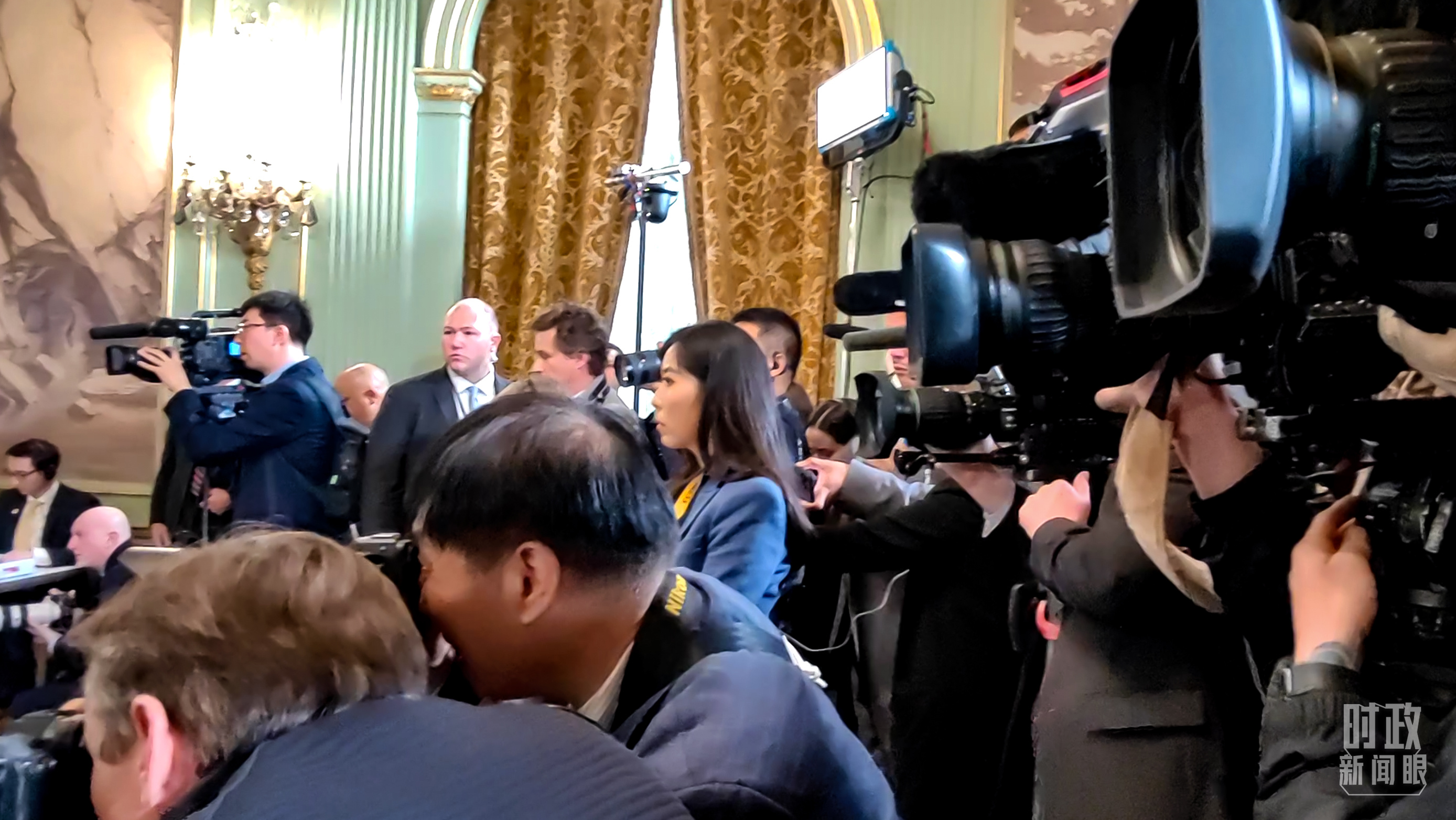 △会晤现场,忙于拍摄的各国记者。(总台央视记者张晓鹏拍摄)