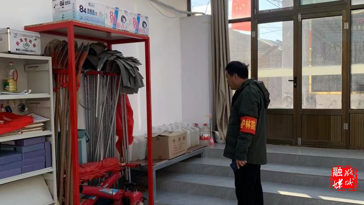 ▲辛安泉镇林业站工作人员在各村督查防火物资储备情况。