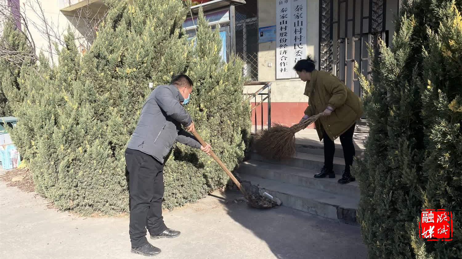 ★12月3日,微子镇相关负责人在秦家山村督导环境卫生整治工作。