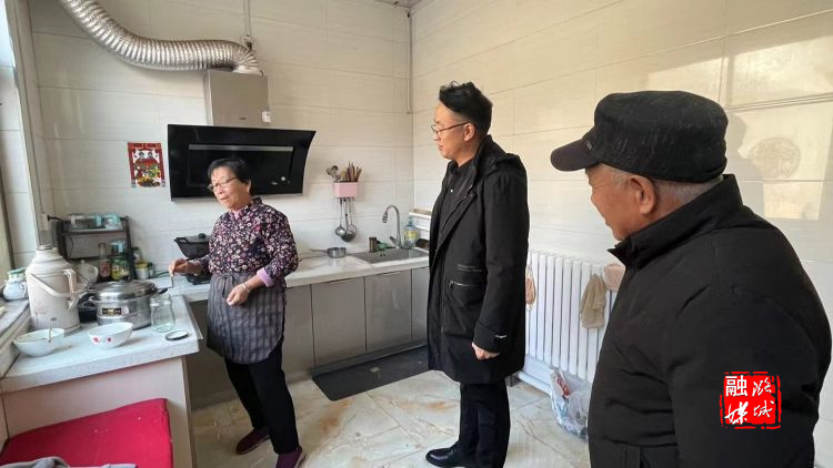 ▲辛安泉镇相关负责人入户查看清洁取暖设备使用情况及取暖效果。