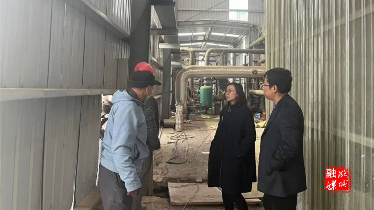 ▲微子镇相关负责人在迪森热力有限公司查看集中供暖设备运行情况。