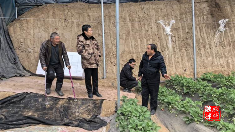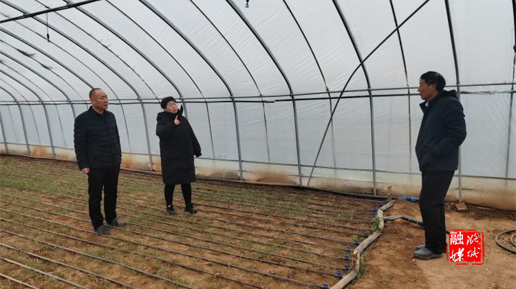 ▲微子镇相关负责人在西靳村和微子村指导蔬菜大棚保暖工作。
