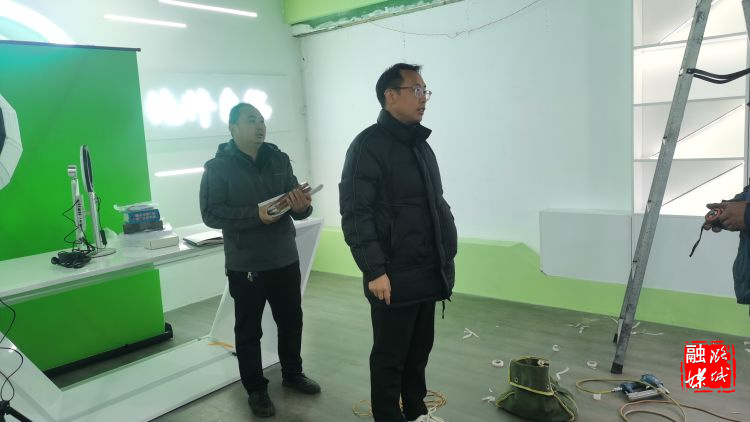 ★12月13日,辛安泉镇相关负责人在石梁村查看农产品展厅及直播间布置情况。