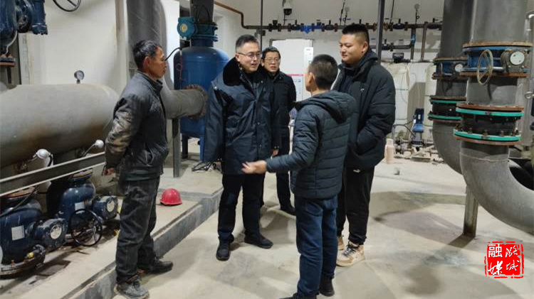 ▲微子镇负责人在王都庄村换热站查看设备运行情况。