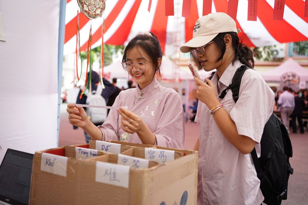 2023年11月1日,在越南河内大学,越南大学生在“同唱一首歌”中国—东盟青年影视歌会活动现场参与猜谜语游戏。新华社记者胡佳丽 摄