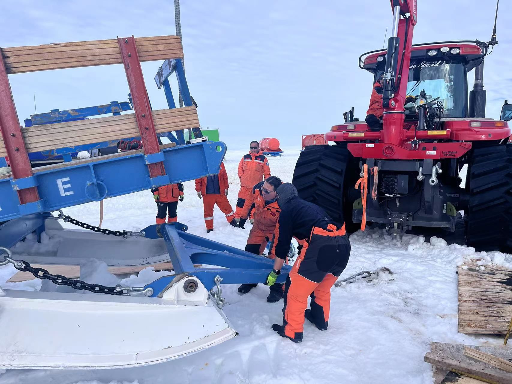 卸货物资包括业务科考物资、后勤保障物资、建设物资等,都将由KA32直升机吊运至内陆出发基地,在物资集结完成之后,昆仑站、格罗夫山等内陆考察队员们将驾驶雪地车队继续向南进发。