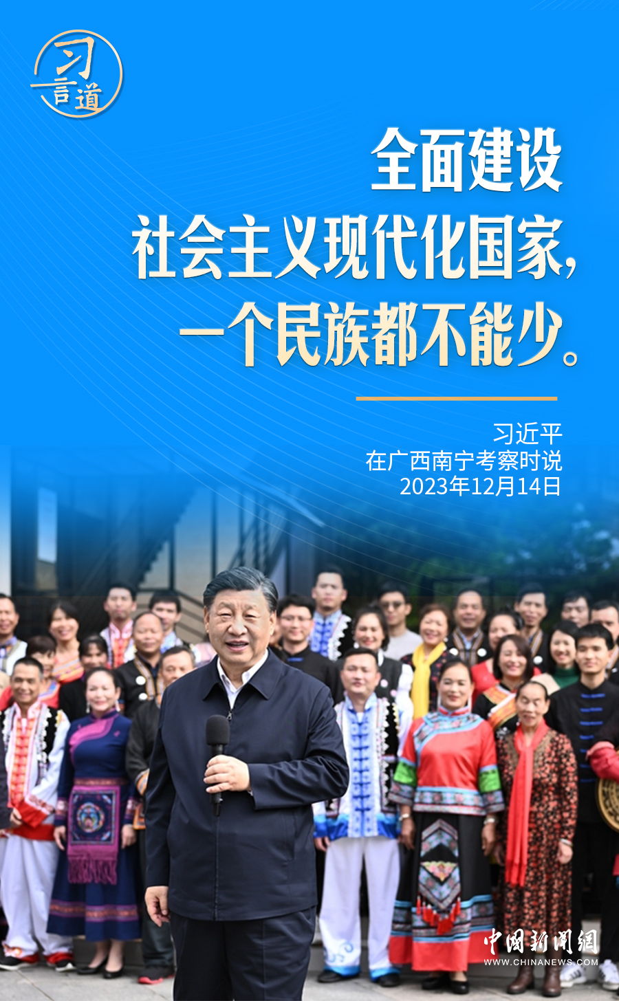 12月14日,在广西南宁名为蟠龙社区的多民族聚居社区里,习近平再次强调了“一个民族都不能少”。