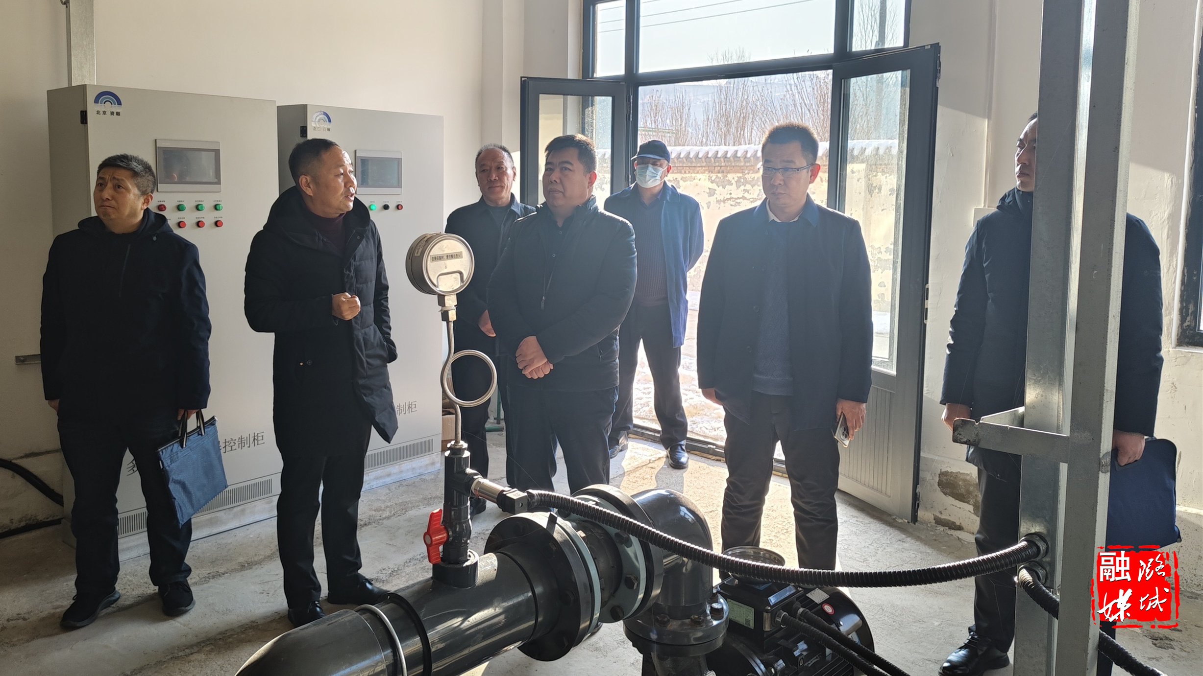 ▲区水利局工作人员到店上镇查看农村生活供水情况。