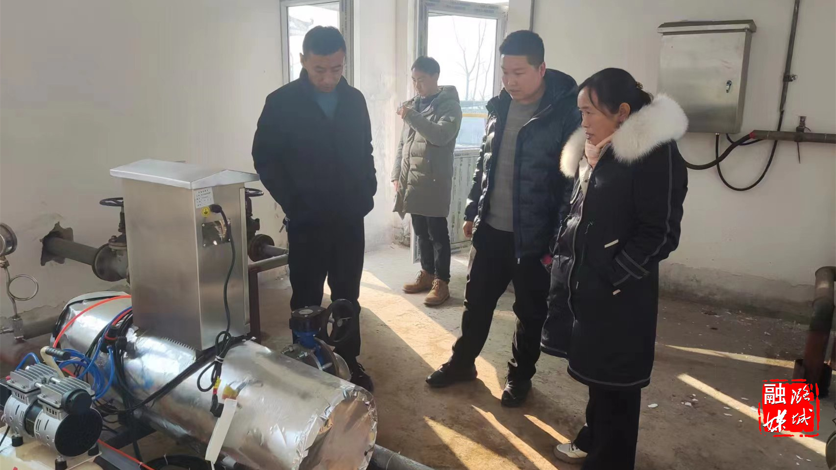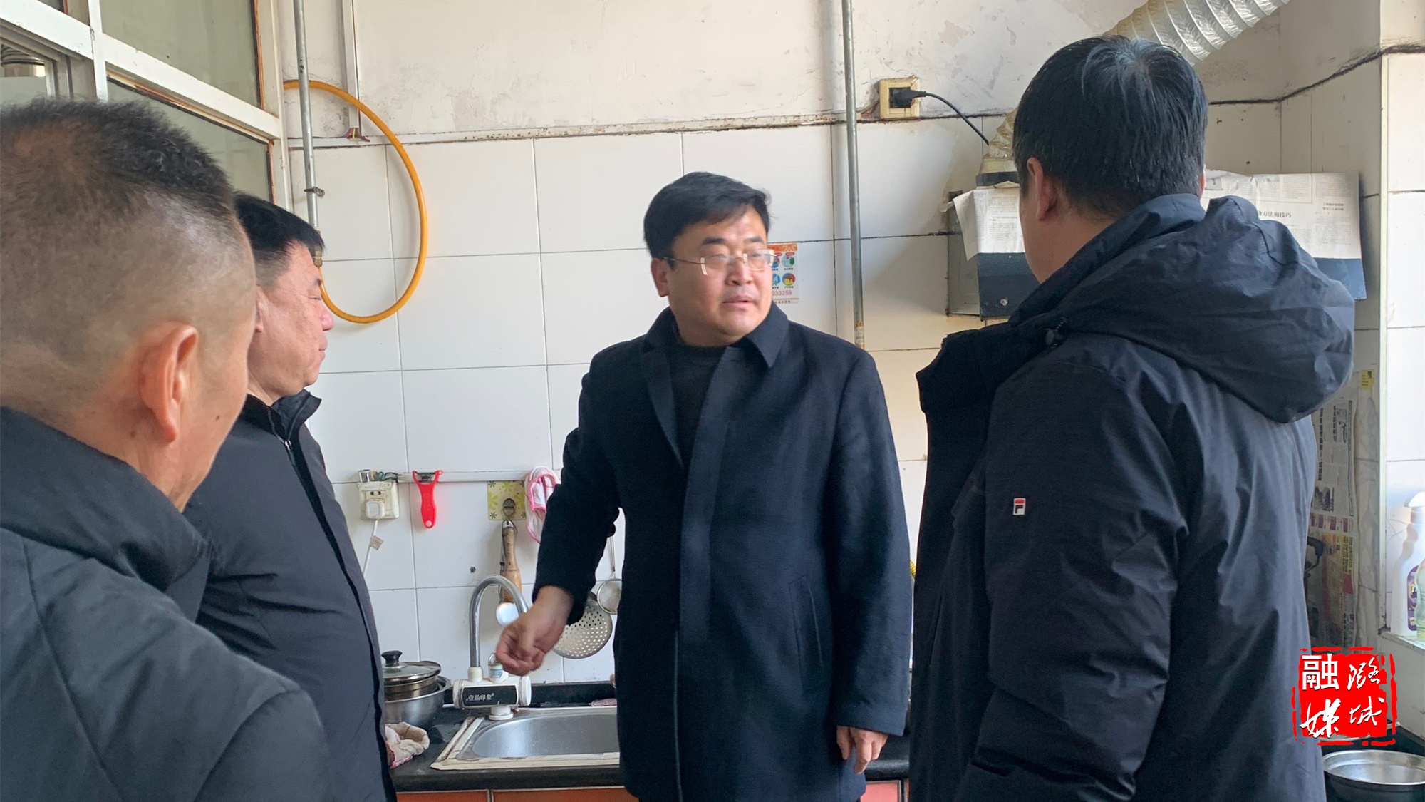 ▲微子镇相关负责人在微子村入户查看集中供暖情况。