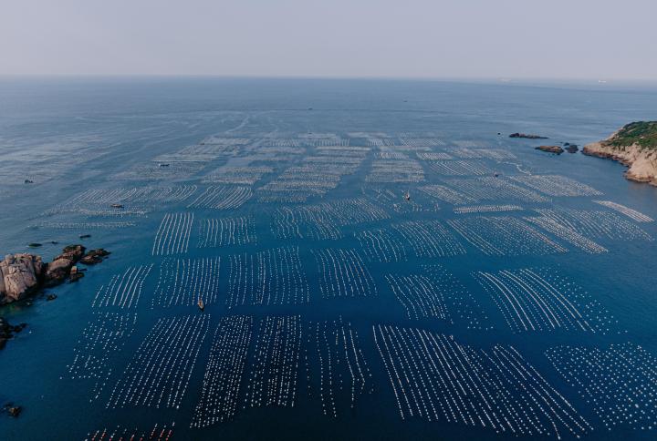 嵊泗县万亩贻贝海上基地。嵊泗县海洋与渔业局供图。