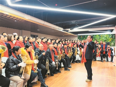 1 月 1 日,潞华街道西华社区幸福养老基地里,由各行各业退休职工组建而成的金色年华合唱团用深情歌唱的方式为新年献礼。