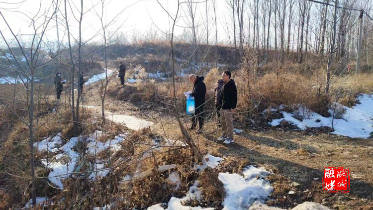 ▲辛安泉镇工作人员在店辛线沿线征地现场开展土地丈量及清点地面附属物工作。