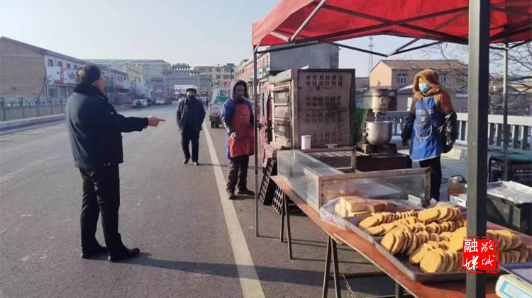 ★1月8日,微子镇行政执法队在主街道规范流动商贩经营行为。