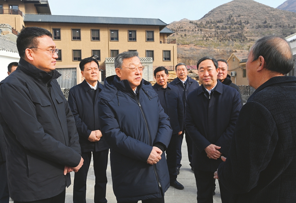 1月9日,省委书记唐登杰在左权县泽城村调研巩固拓展脱贫攻坚成果同乡村振兴有效衔接工作情况,了解老年人日间照料中心建设运行情况。山西日报记者史晓波摄