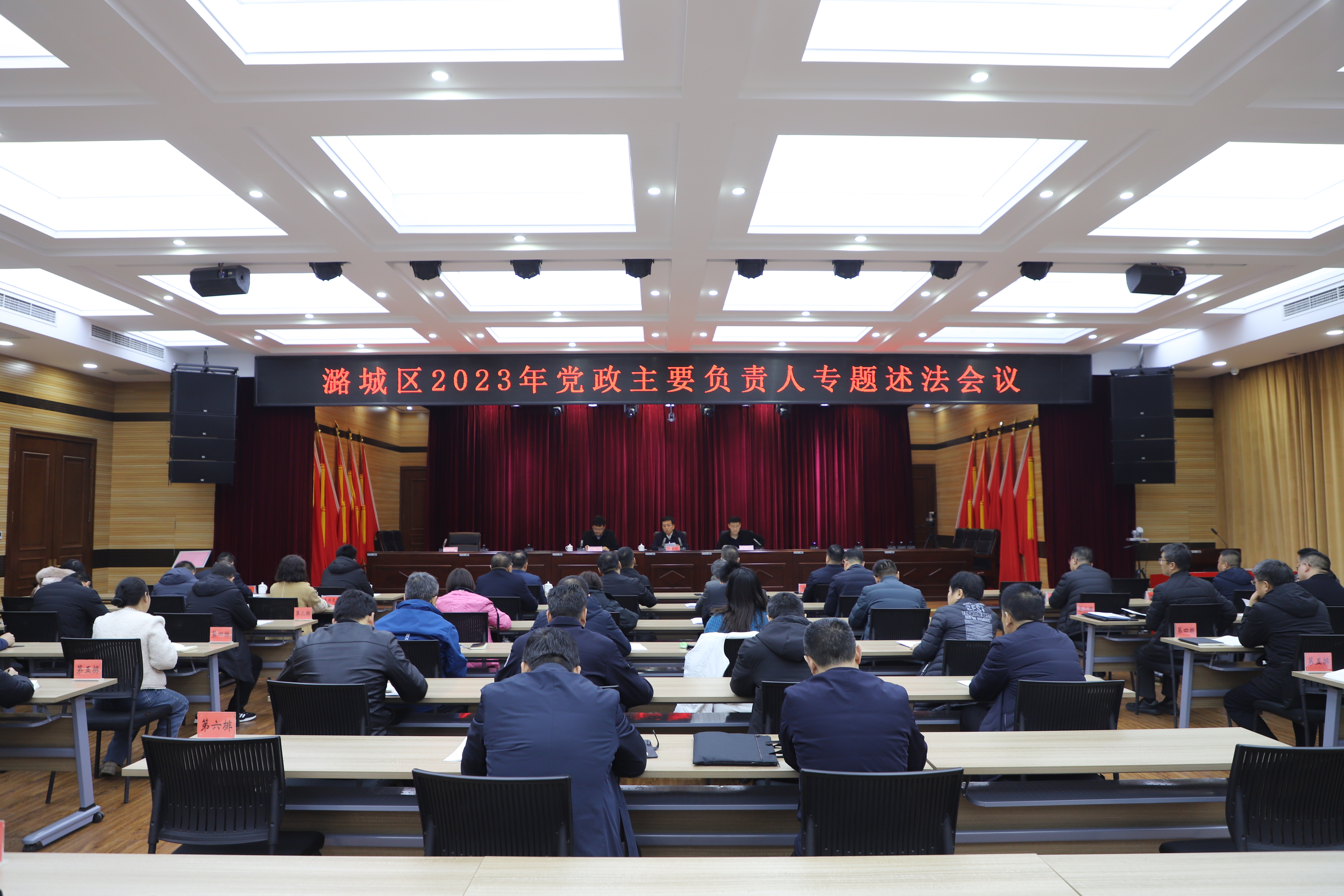 专题述法采取现场述法和书面述法相结合的方式进行,潞华街道、辛安泉镇、教育局主要负责人现场述法,其他单位书面述法。会议还进行了民主测评。