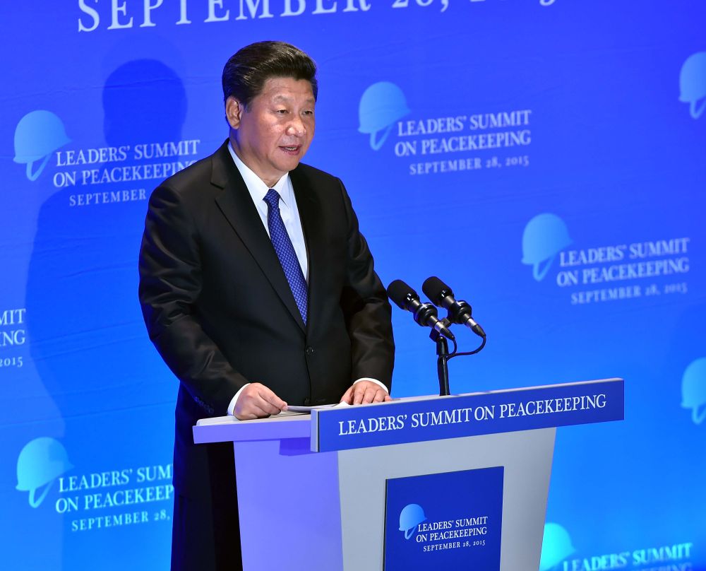 2015年9月28日,习近平主席在纽约联合国总部出席联合国维和峰会并发表讲话。新华社记者 李涛 摄