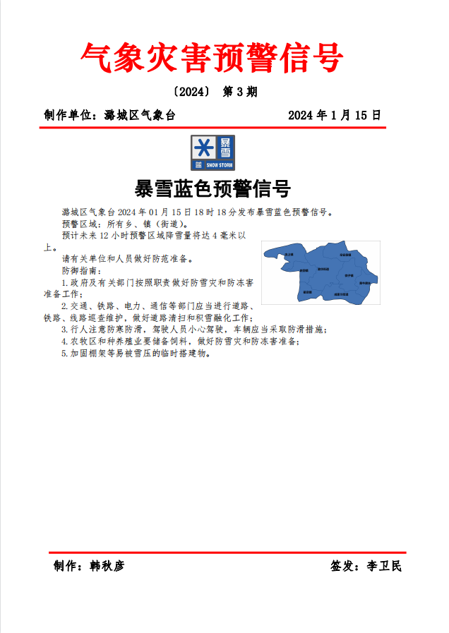 暴雪蓝色预警信号