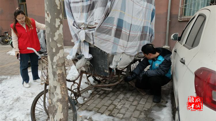 ★1月15日,潞华街道西华社区工作人员在所辖小区内解决僵尸车停放问题,改善小区居住环境。