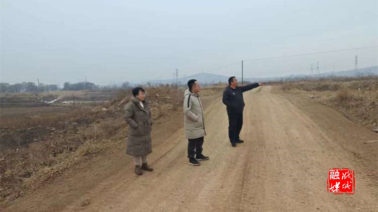 ▲潞华街道相关负责人在张家河村、王郭庄村查看旅游公路项目建设情况。
