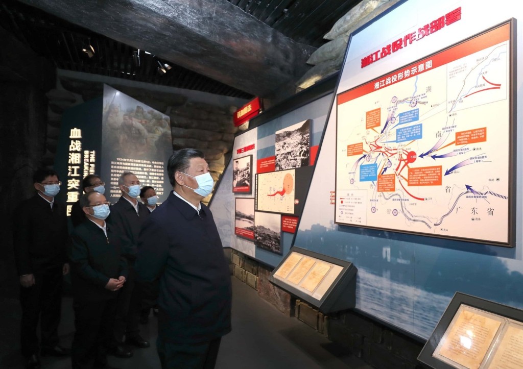25日上午,习近平总书记来到位于广西桂林全州县才湾镇的红军长征湘江战役纪念园,向湘江战役红军烈士敬献花篮,参观红军长征湘江战役纪念馆,缅怀革命先烈、赓续共产党人精神血脉。随后,习近平来到才湾镇毛竹山村,考察推进乡村振兴、基层治理等情况。当天下午,习近平在漓江阳朔段实地了解漓江流域综合治理、生态保护等情况。(新华社记者 鞠鹏 谢环驰 申宏 殷博古 摄)