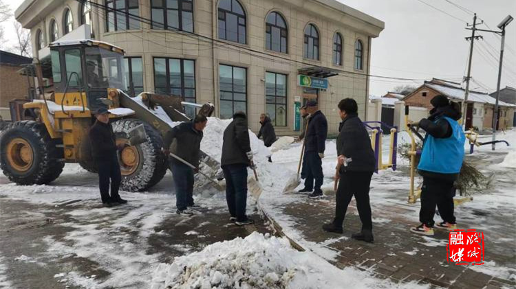 ▲微子镇冯村组织工作人员清理道路积雪。