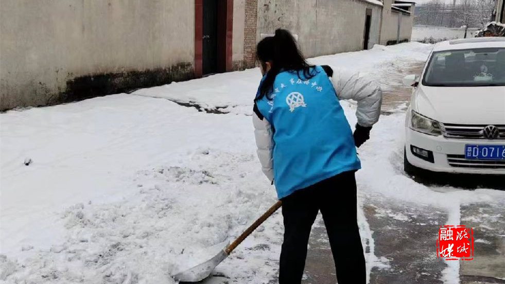 ▲史回镇组织工作人员清理道路积雪。