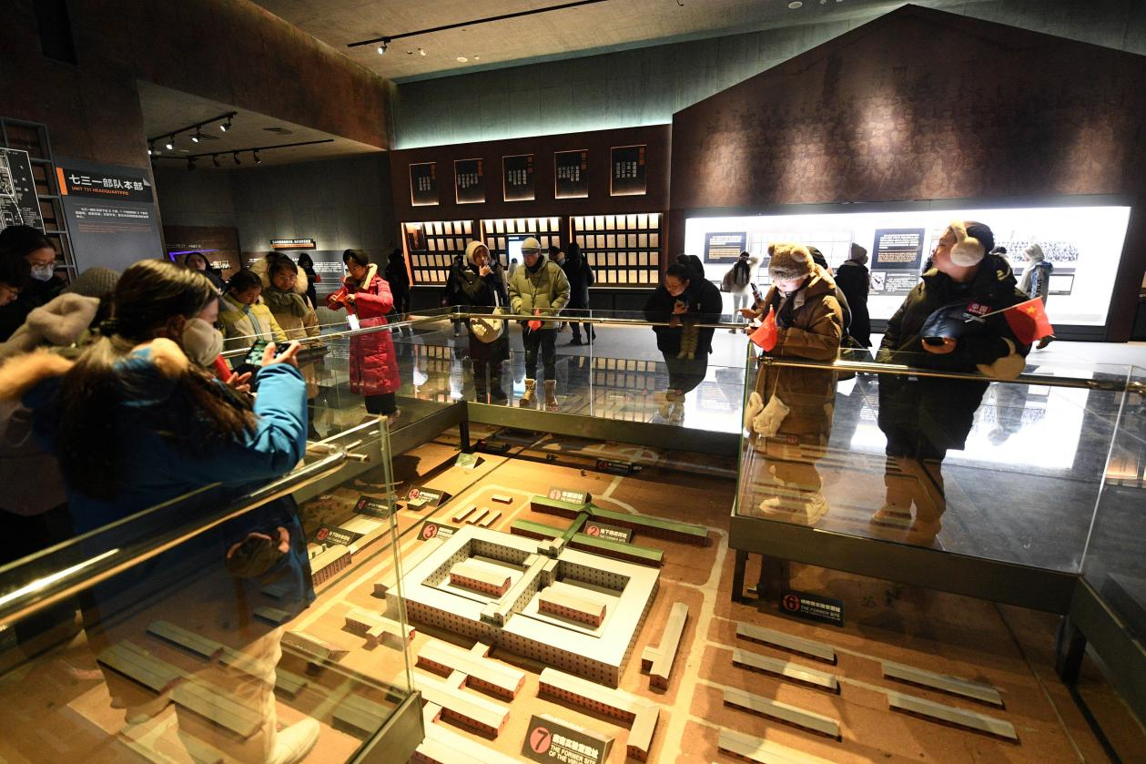 元月的哈尔滨,大地鹤雪,滴水成冰。严寒之中,大批游客在侵华日军第七三一部队罪证陈列馆前排起了长队。