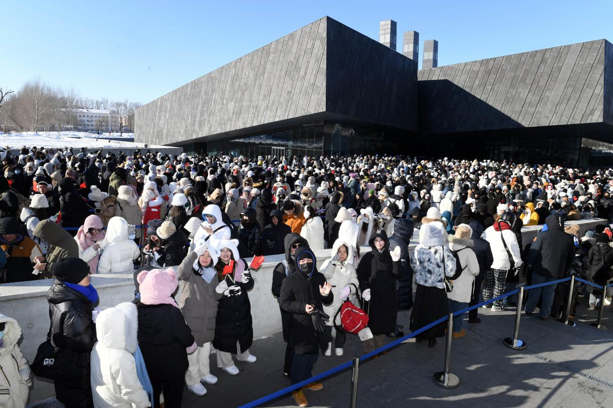 2024年1月15日,哈尔滨,侵华日军第七三一部队罪证陈列馆门口排队的游客整齐有序。