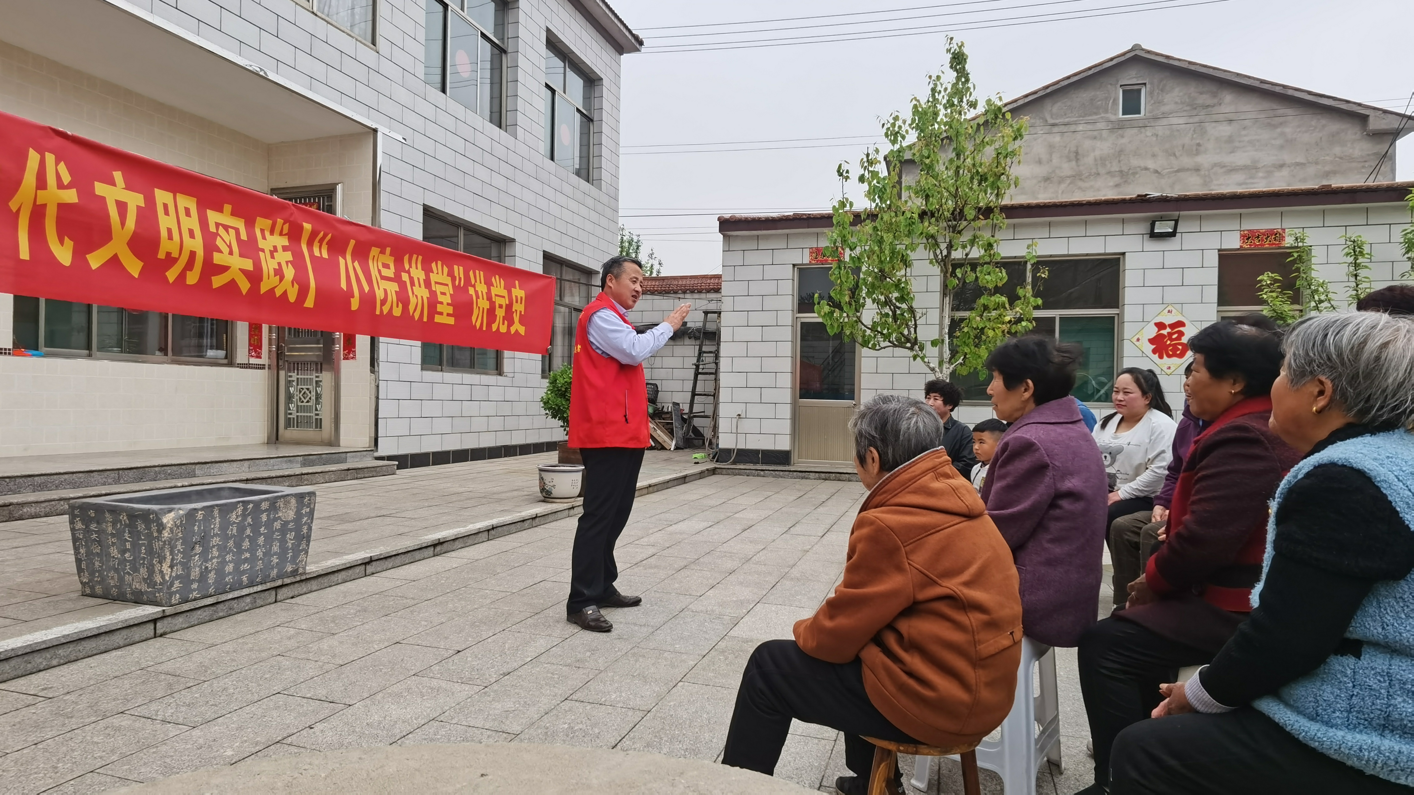 一张红色条幅,几把小板凳,大家围坐一圈,听党的历史,谈亲身感受,畅聊现如今的美好生活,一大早,来自微子镇微子村的男女老少们搬出椅子凳子,整齐地坐在一户农院中,等待着一堂别具一格的党史宣讲课的开始。