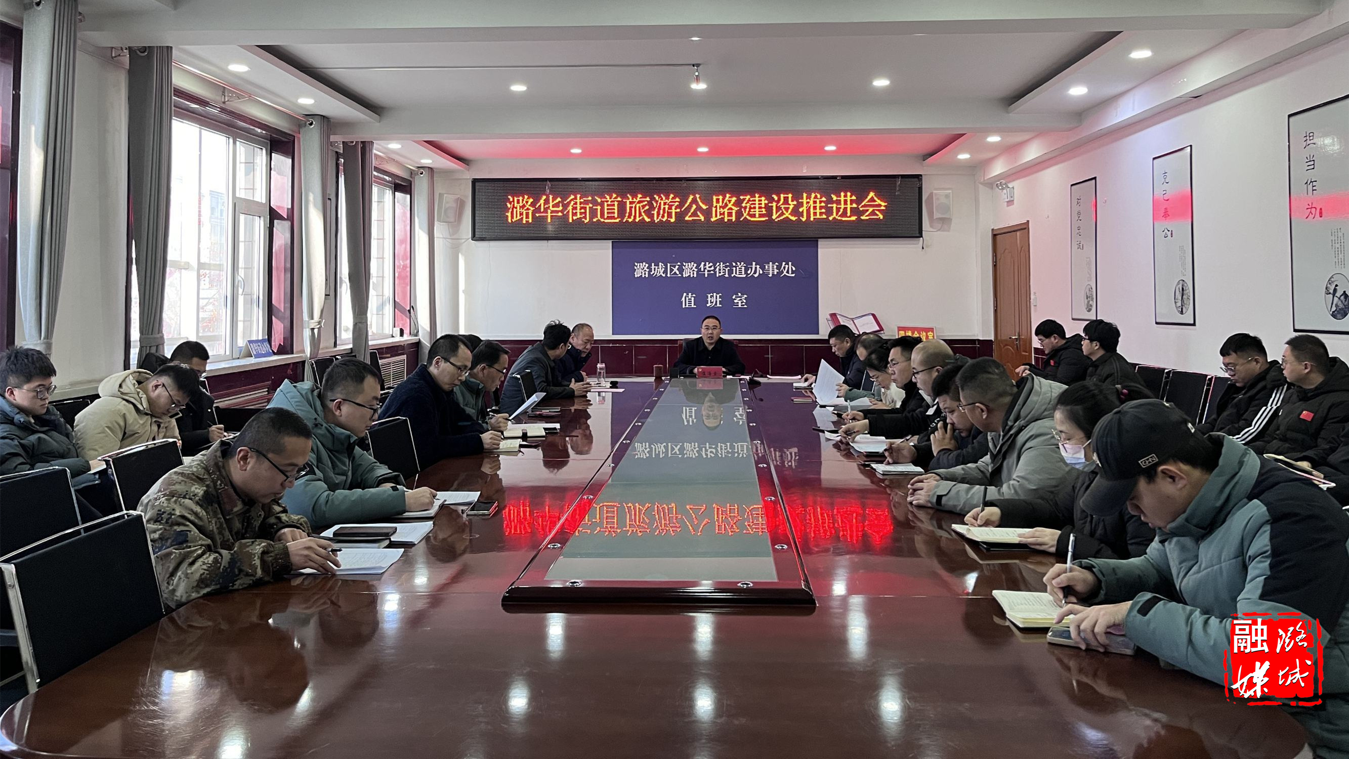 ▲潞华街道负责人主持召开“太行一号”旅游公路建设推进会。