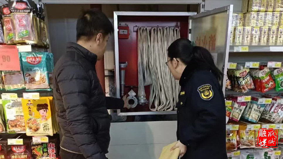 ★1月25日,微子镇工作人员在部分超市检查消防设备情况。