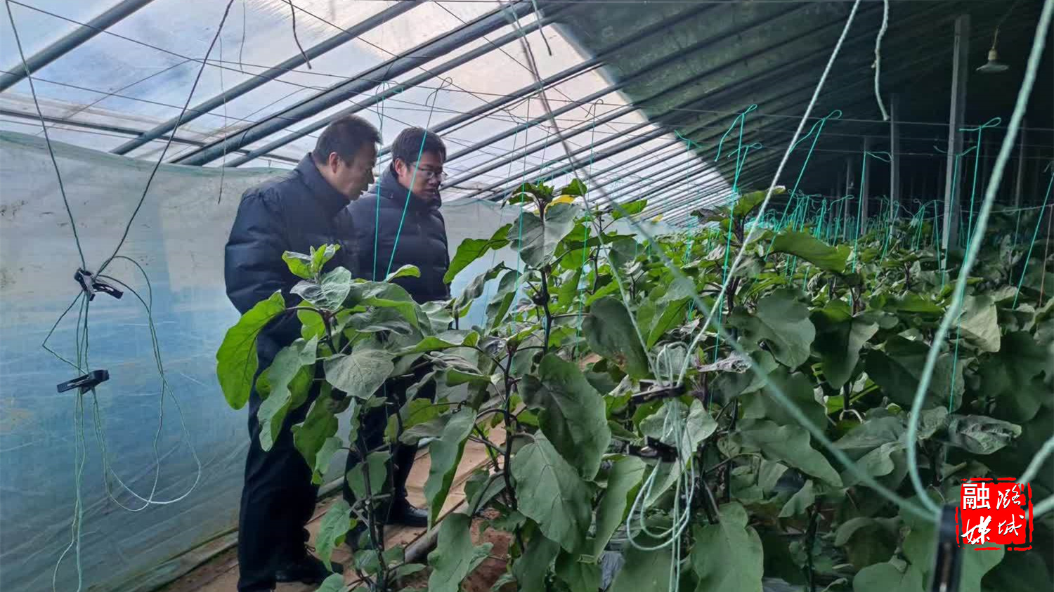 ★1月27日,微子镇相关负责人在西靳村高标准蔬菜大棚查看冬季保暖情况。