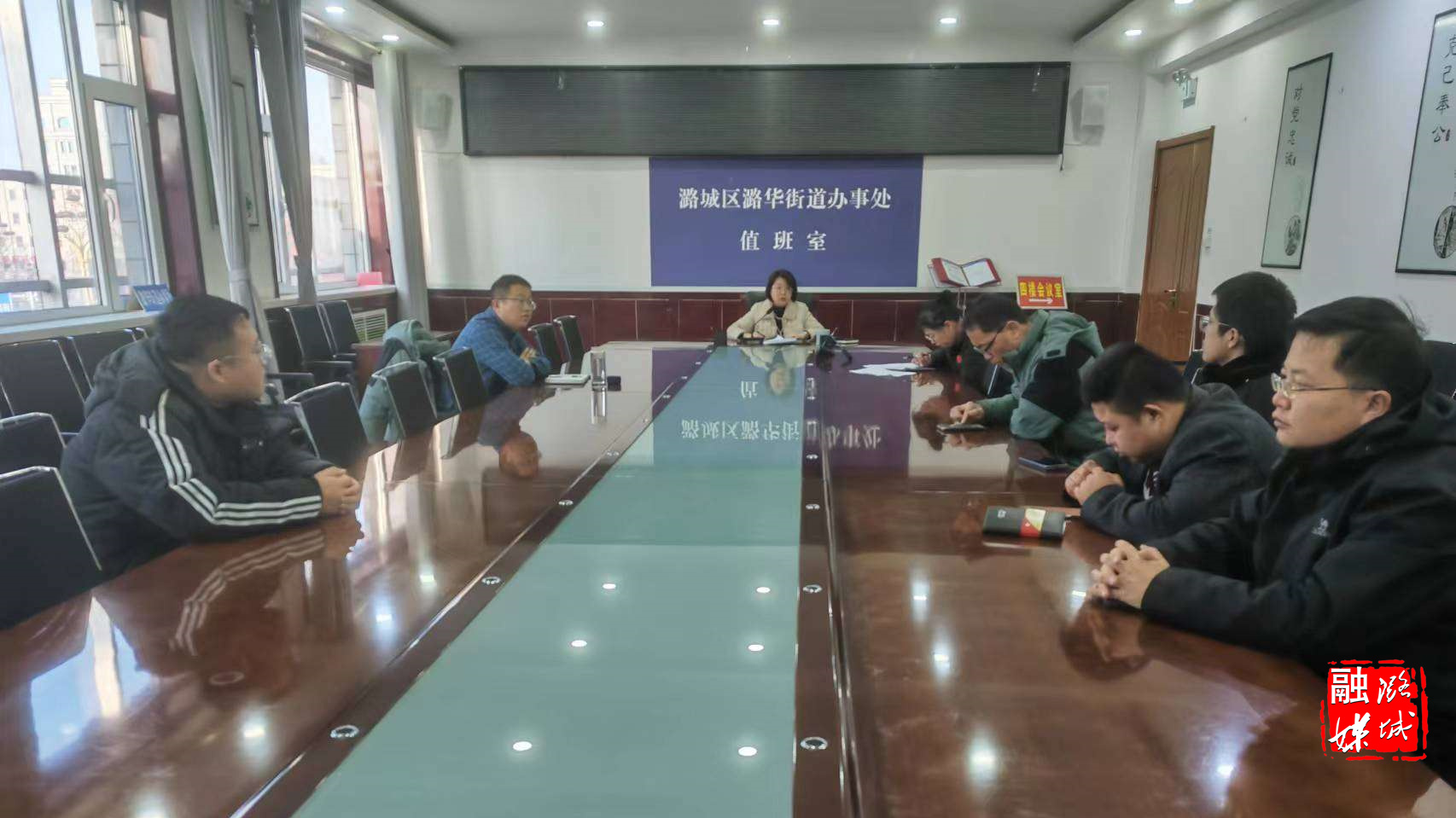 ▲潞华街道相关负责人主持召开旅游公路建设推进会。