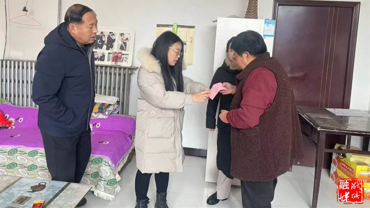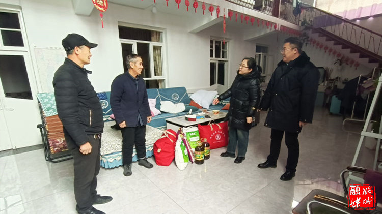 ▲翟店街道工作人员走访慰问困难群众,并送上节日祝福和慰问品。