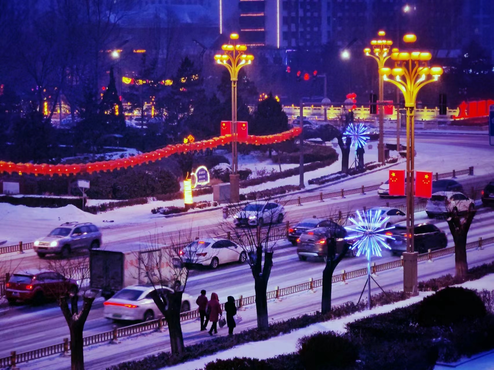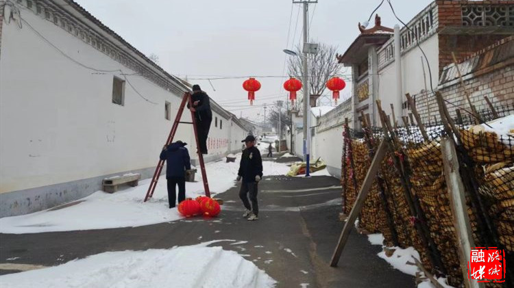 ★2月2日,成家川街道米家村工作人员悬挂节日灯笼。