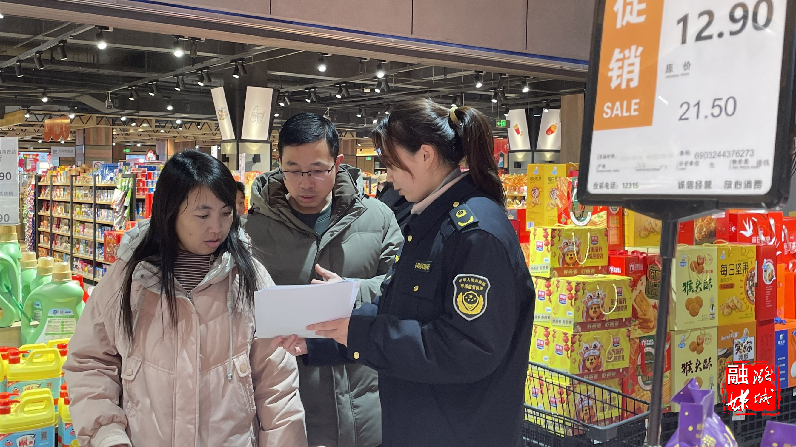 ★2月6日,区市场监督管理局相关负责人在客都超市进行食品安全抽检。