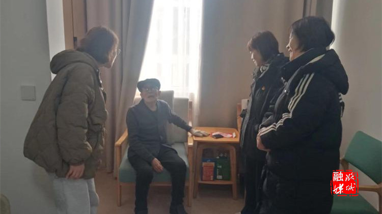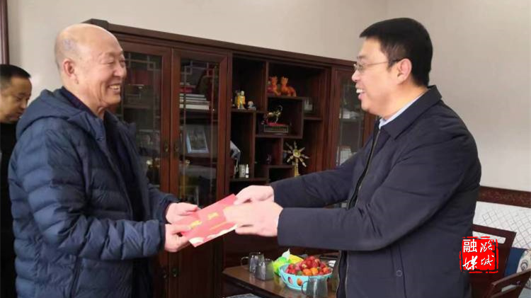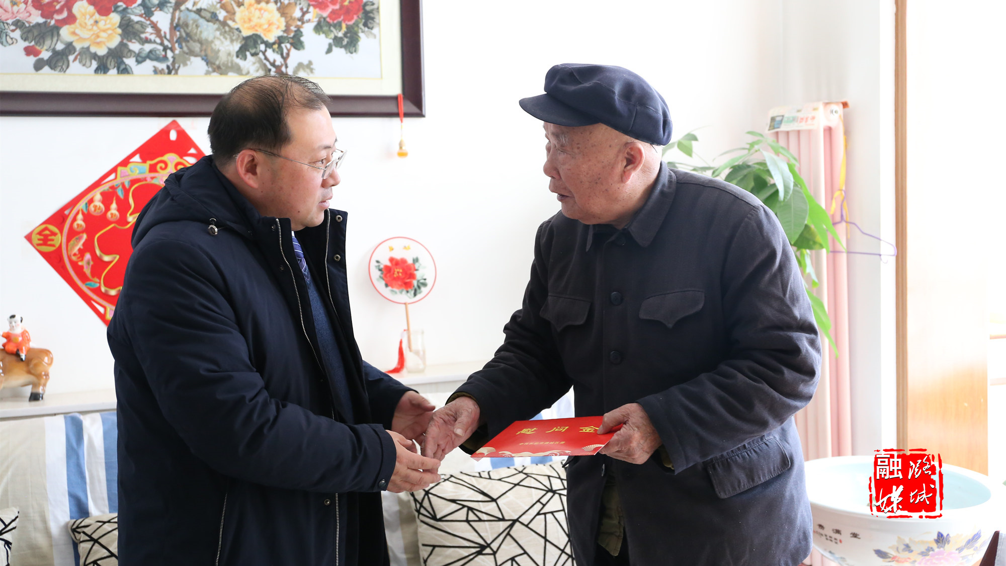 ▲翟店街道负责人到全省优秀共产党员申晚恩和烈士子女郭连英家中走访慰问,并送去节日祝福和慰问金。