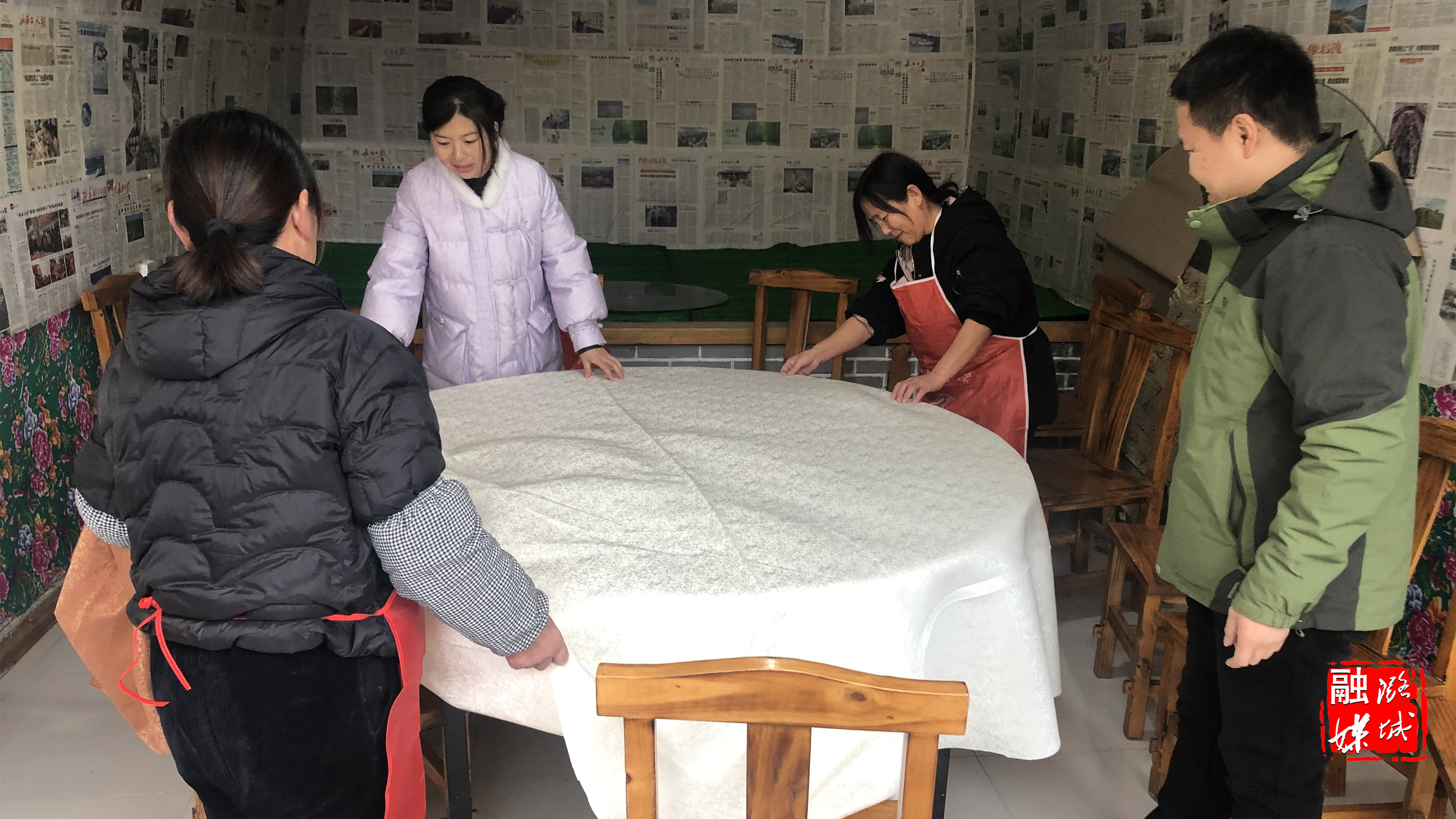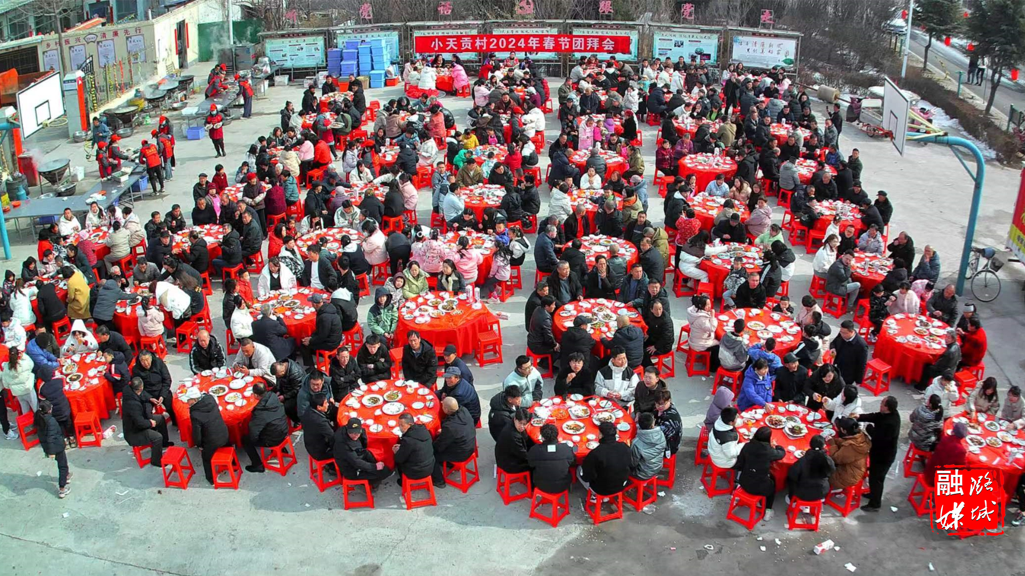 ▲翟店街道小天贡村村民欢聚一堂,摆百家宴,吃团圆饭。
