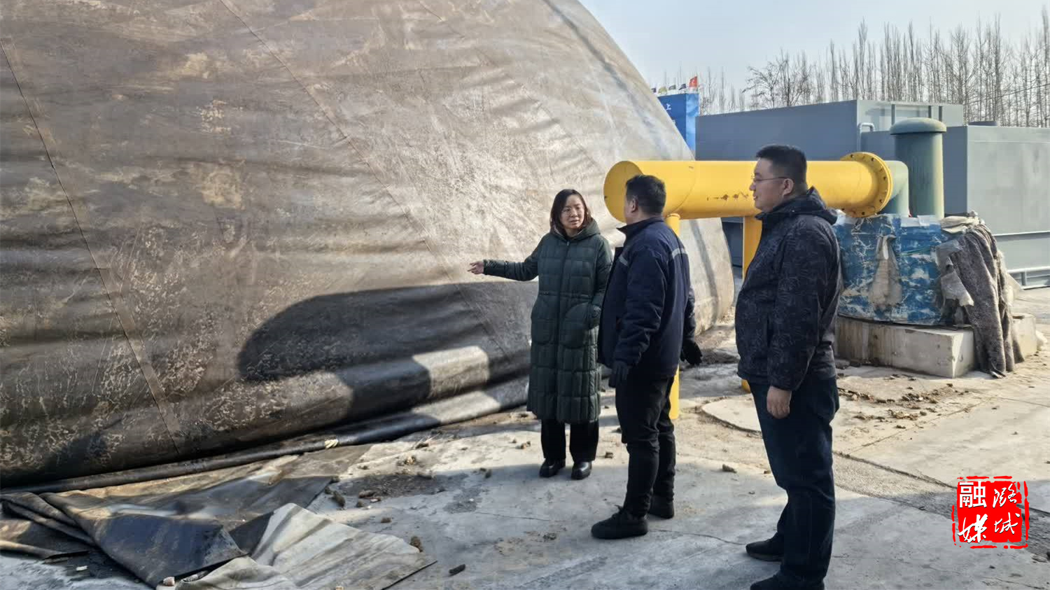 ▲微子镇相关负责人在创蓝生物科技有限公司督导保暖保供工作。