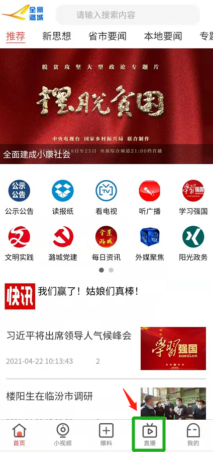 关注“潞城广播电视台”微信公众号,点击菜单栏-直播潞城