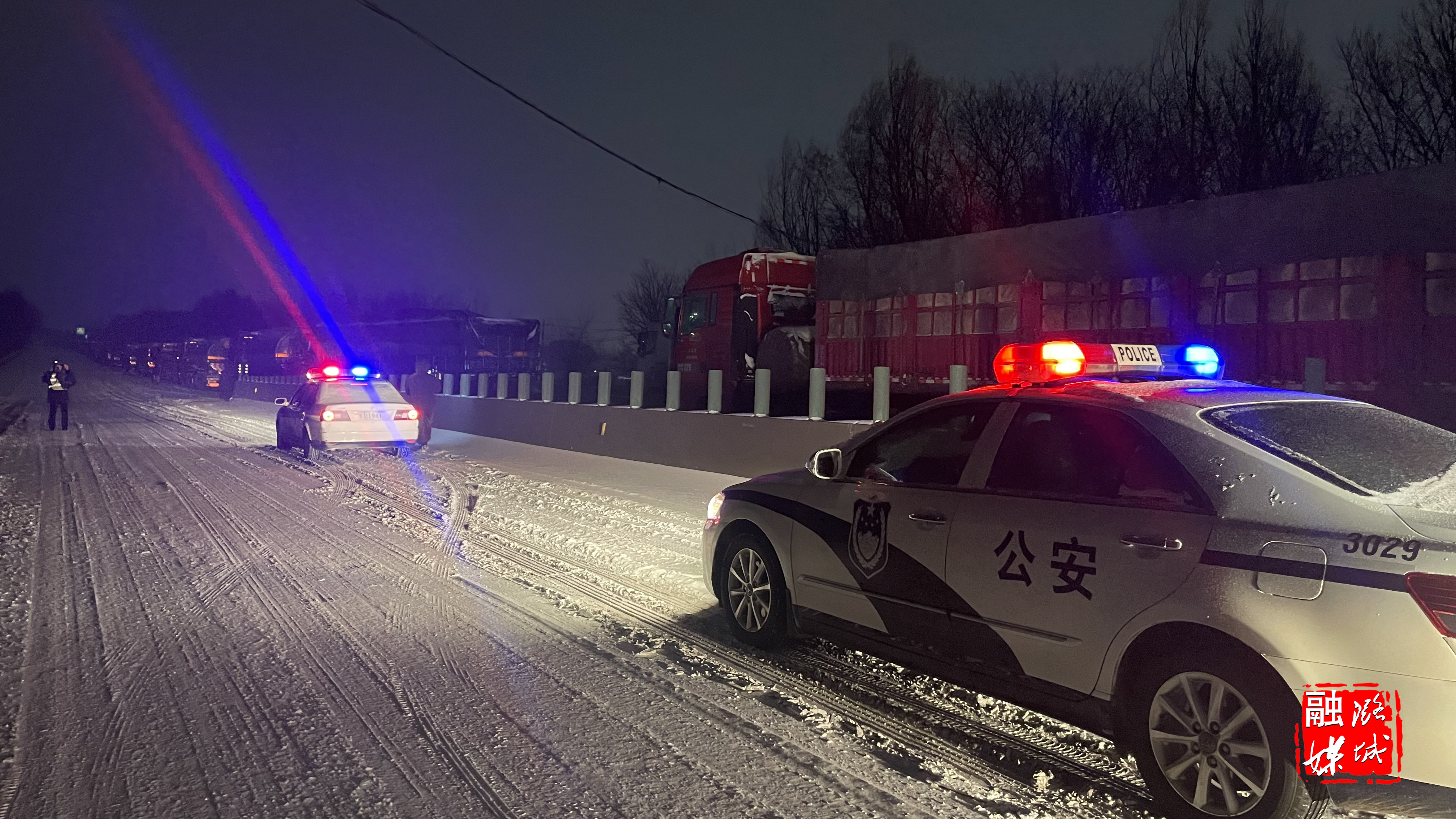 潞城东高速路口是外地大货车运货的一条重要通道,了解情况后,区公安分局第一时间进入应急状态,迅速调动工作人员连夜在现场开展道路疏通工作,并对高速公路各出入口展开巡逻,全方位落实应急除险、物资储备、暖心服务等工作。